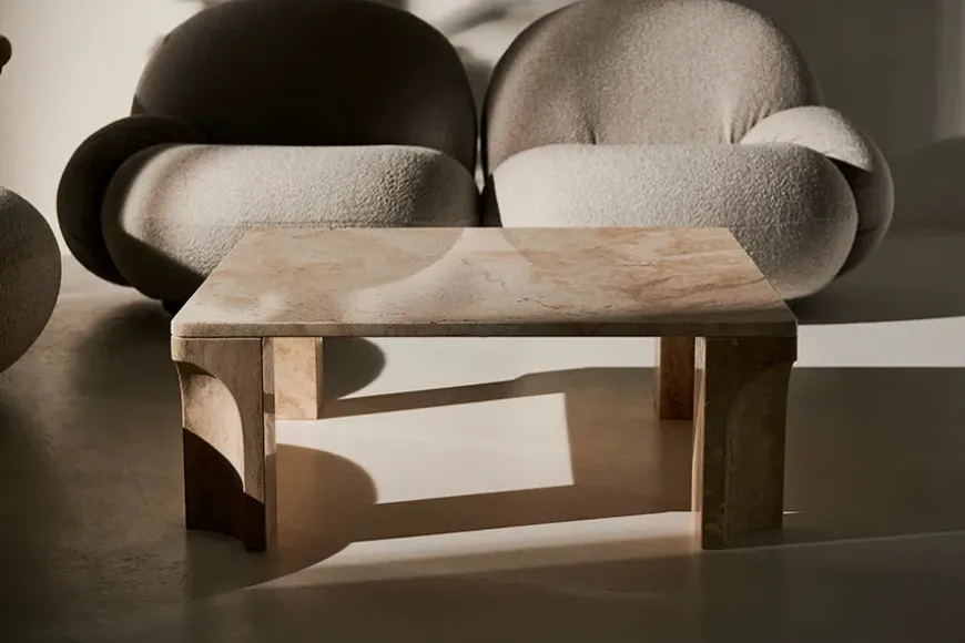 Doric Coffee Table 80 x 80 cm, Neutral White Travertine fra GUBI
