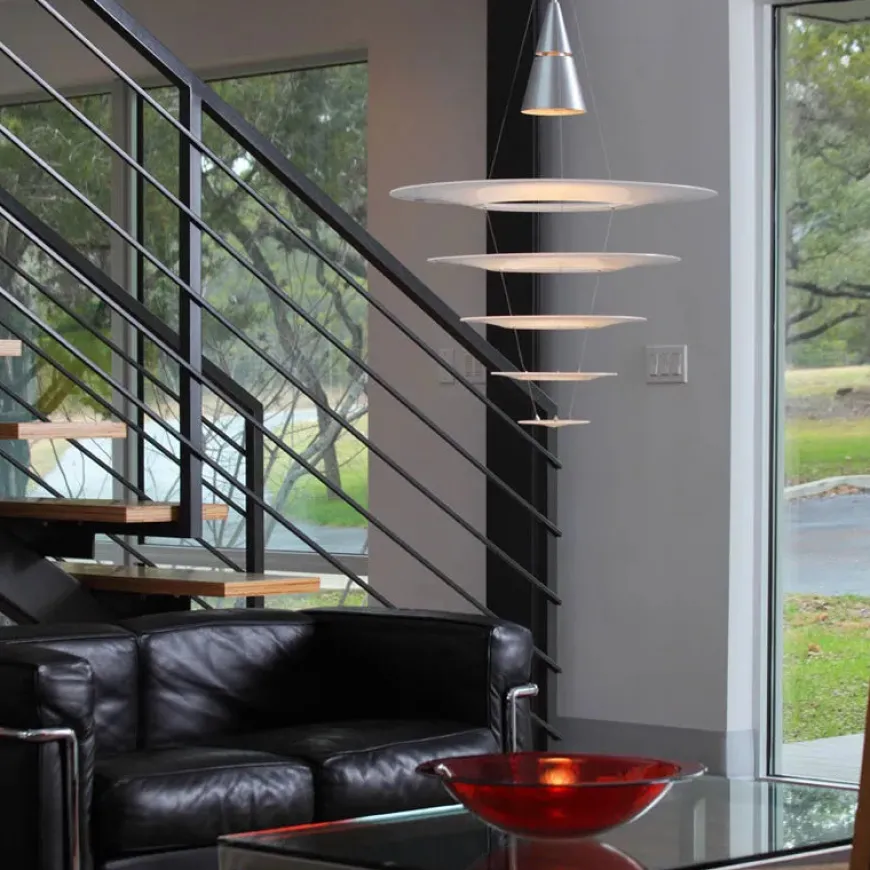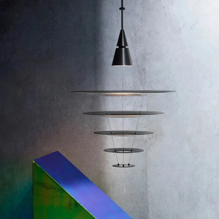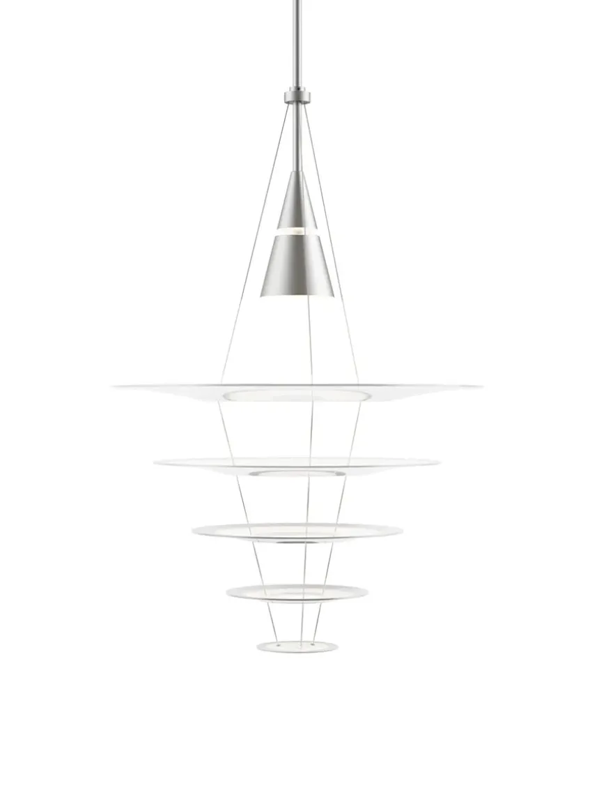 Materiale: Skærme i matlakeret akryl, kegle i børstet og lakeret aluminium.