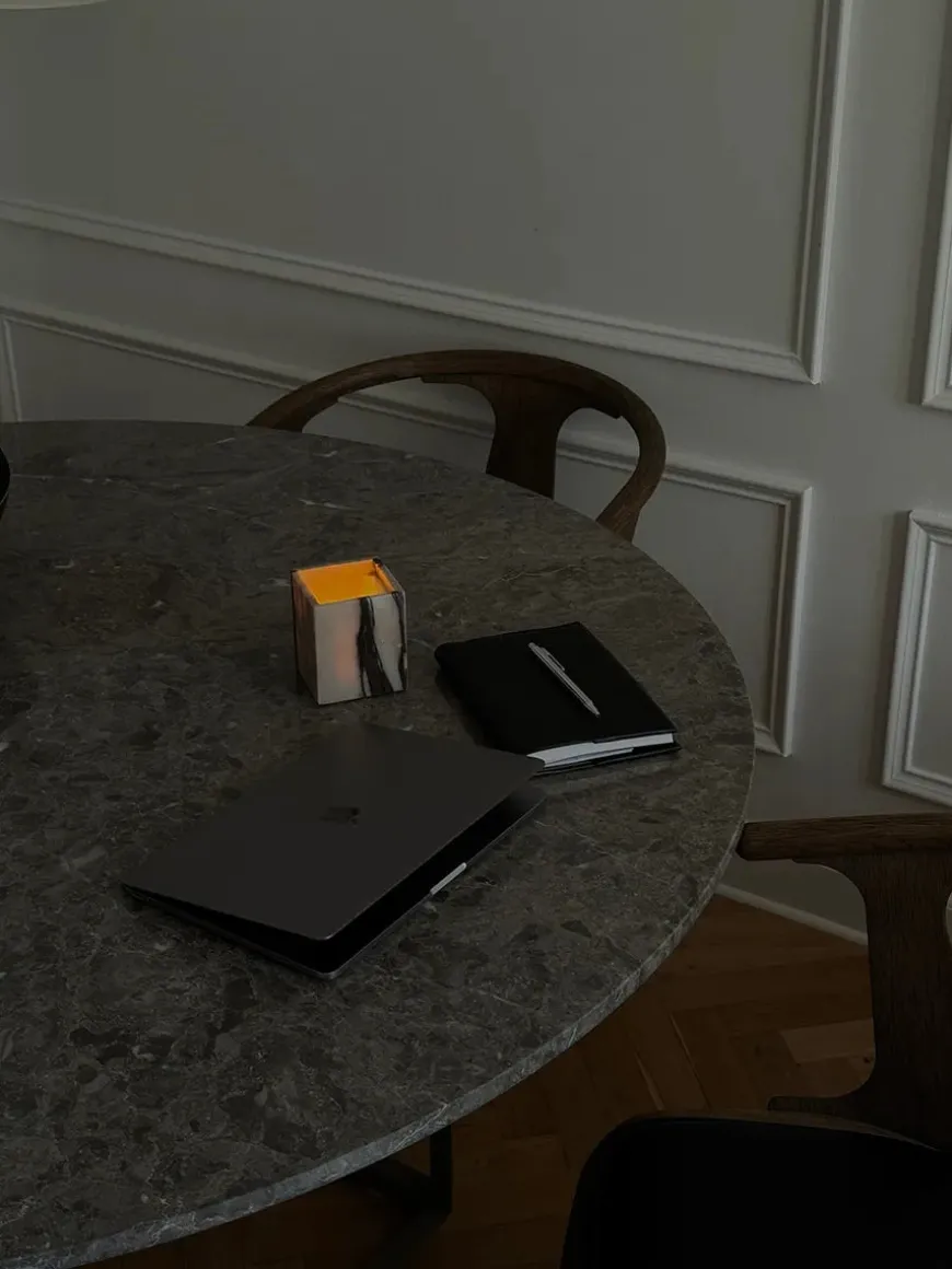 Florence spisebord Ø145, black marquina fra New Works
