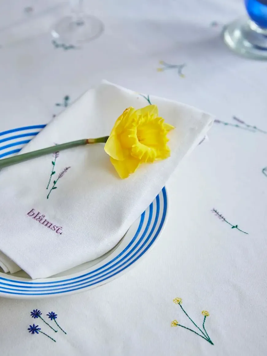 Uanset om du dækker op til middagsselskab eller nyder en rolig hverdagsmiddag, skaber Flower dugen en afslappet og maritim stemning. Den er designet til at holde, og broderiet forbliver flot – selv efter vask.
