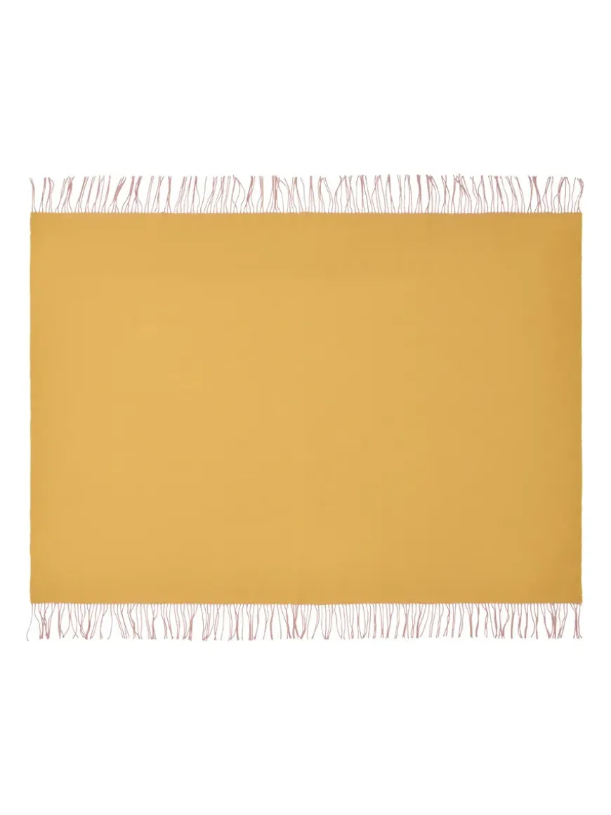 Smuk og lækker plaid fra Silkeborg Uldspinderi. En smuk detalje ved plaiden er at man kan vælge, hvilken farve der skal vises ud ad, mens den anden farve vil være at syne. Franja er vævet i 50% alpaka og 50% uld. Ulden er temperaturregulerende, og derfor er tæppet skønt at bruge året rundt. Kvaliteten på Silkeborg Uldspinderis tæpper er høj, og det mærkes tydeligt her. Tæppet er her i en smuk lyserød og gul farve. Frynserne på tæppet er placeret på siden af tæppet i stedet for i top og bund. Det er en fin detalje, som giver tæppet charme.