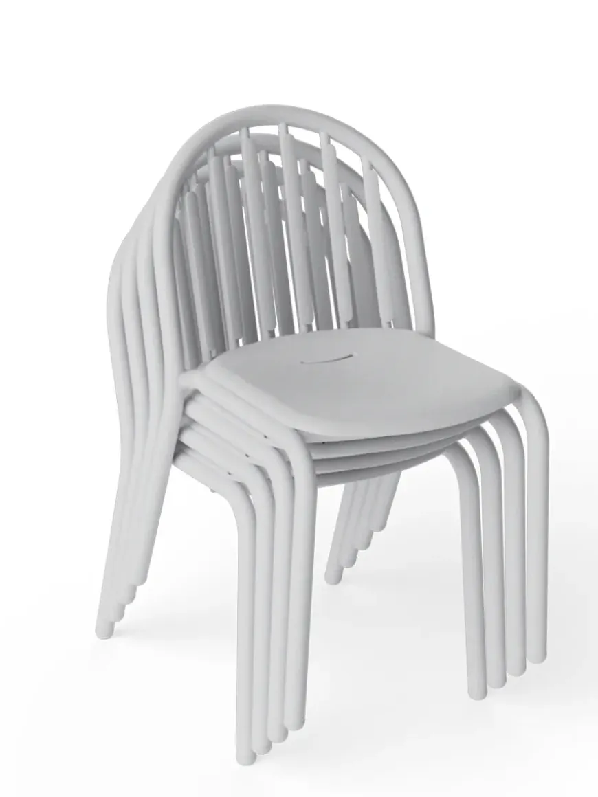 Når Fred’s chair ikke er i brug, kan op til seks stole stables, hvilket gør opbevaring nem og pladsbesparende. Stolen er velegnet til både terrasser, altaner og udendørs caféområder.