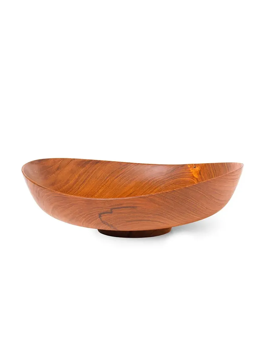 I 1951 designede Finn Juhl de smukke træskåle. Skålene er karakteristiske ved de organiske former og balancen mellem træ, form og geometriske mål. Afhængigt af hvilken vinkel du ser den fra, kan skålen skifte form, og den får dermed et helt andet udtryk, hver gang du drejer den en smule. Skålen vil være et skulpturelt element i din indretning, som kan pynte på både sofabordet, vindueskarmen eller køkkenbordet. Brug skålen som udsmykning eller som frugt eller salatskål.