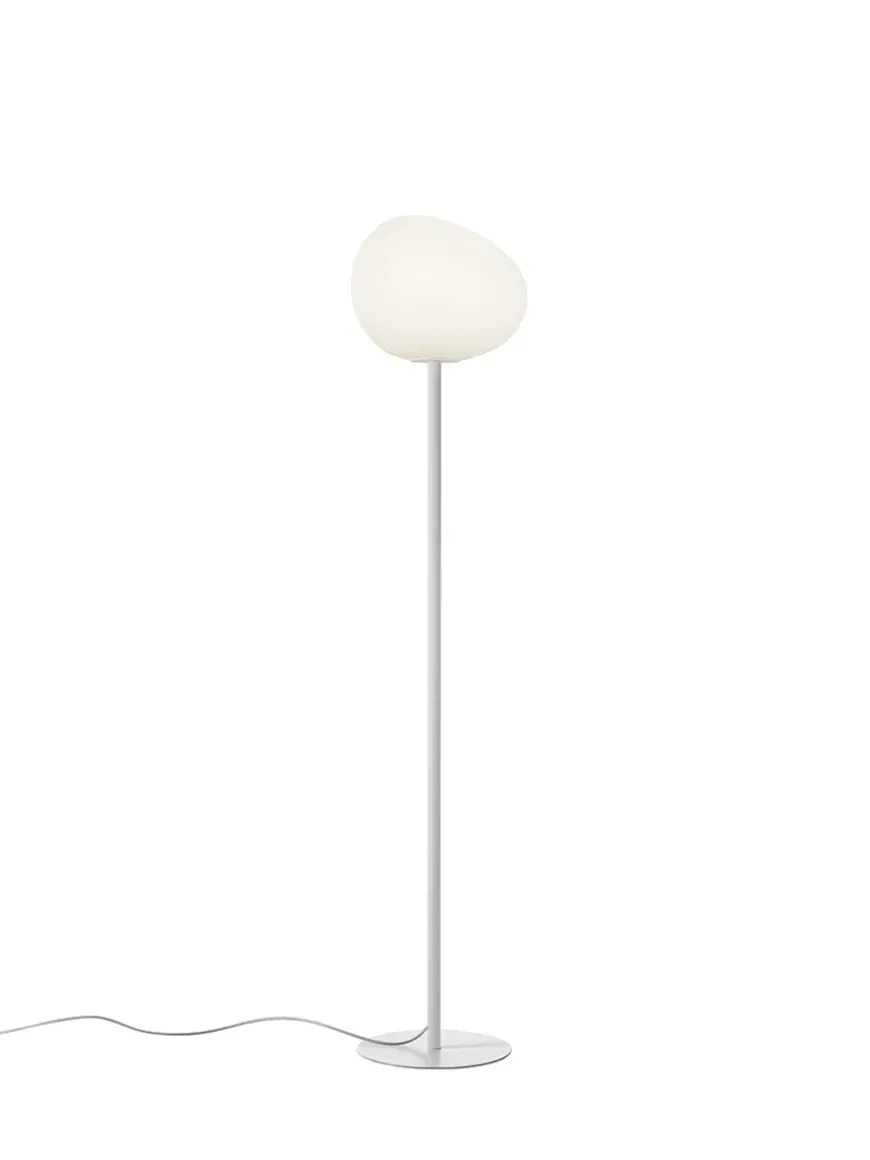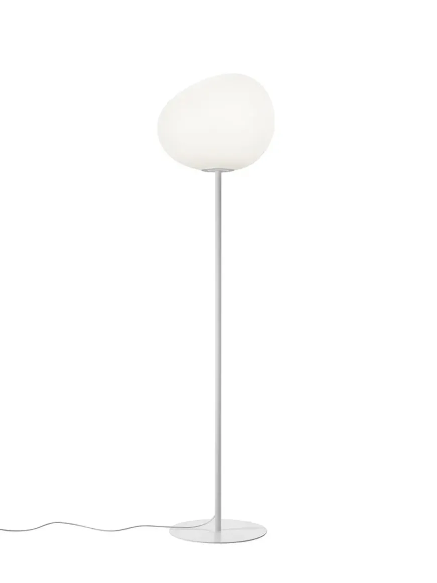 Gregg gulvlampe fra Foscarini Designet af Ludovia & Roberto Palomba (2010) Lampen findes i to størrelser: Mellem: H: 151 x Ø: 31 cm Stor: H: 186 x Ø: 47 cm