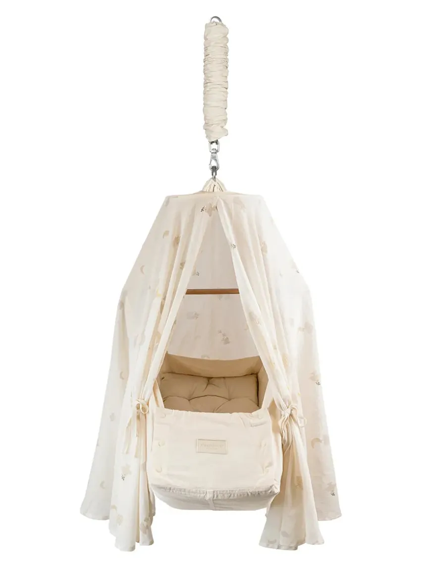 Babyer er nemme at distrahere. De er nysgerrige og der er mange spændende og nye ting at kigge på. Nogle børn har svært ved at falde i søvn med forstyrrelser fra omverdenen. Moonboon har derfor udviklet Heaven. Heaven er en vuggehimmel, der nemt kan monteres på både slyngevuggen og vuggen. Heaven-baldakinen reducerer uønsket lys, så barnet kan få en bedre søvn. Den er udviklet, så der er god luftgennemstrømning.