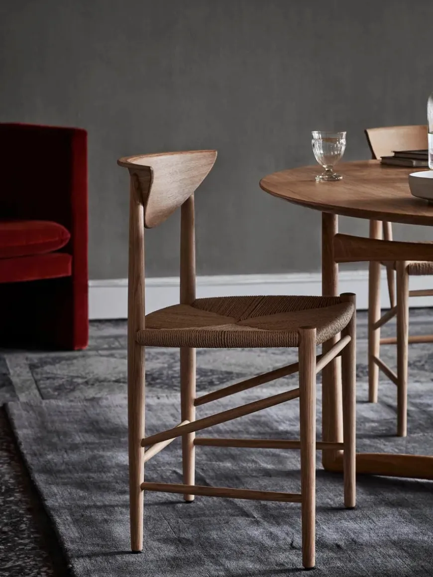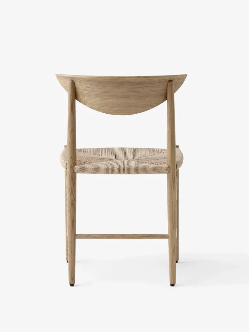 Den ikoniske Drawn HM3 fra &Tradition bringer varme og stoflighed til spiseområdet. Tegnet i 1956 af Hvidt og Mølgaard og genintroduceret med samme respekt for håndværket, forener stolen massivt træ, formpresset ryglæn og et håndvævet sæde i naturpapirledning. De bløde kurver og den lune papirflet giver en indbydende komfort der holder til hverdagsbrug og lange middage. HM3 er den rene spisebordsstol i serien uden armlæn med et let og ærligt udtryk der matcher både moderne og klassiske interiører. Vælg mellem olieret eg, olieret valnød eller sortlakeret eg og tilføj eventuelt den skræddersyede læderpude for ekstra blødhed. Materialerne er nøje udvalgt og udførelsen præcis så stolen patinerer smukt og får karakter over tid.