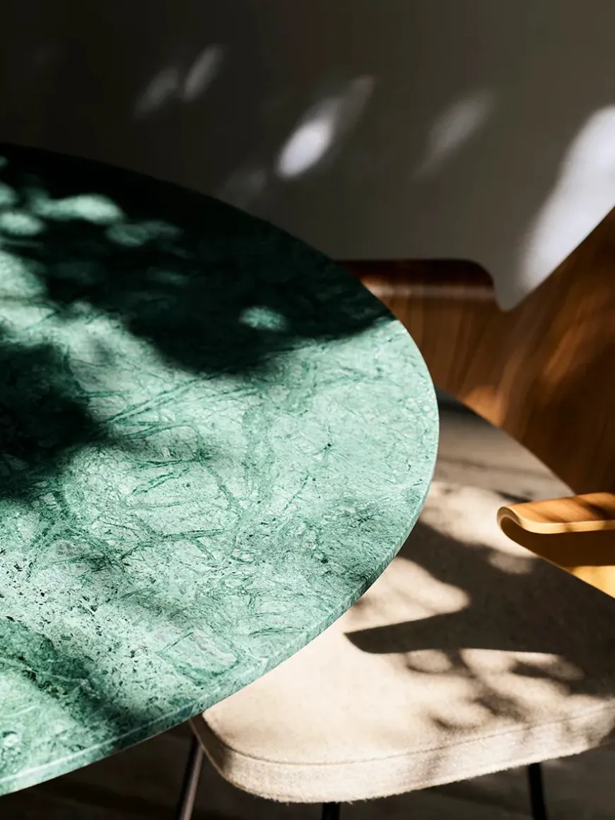 Den seneste tilføjelse til In Between serien fra &Tradition er dette runde bord med en base i metal. Bordpladen laves i samme materiale som resten af In Between serien. Designet af Sami Kallio i 2019.