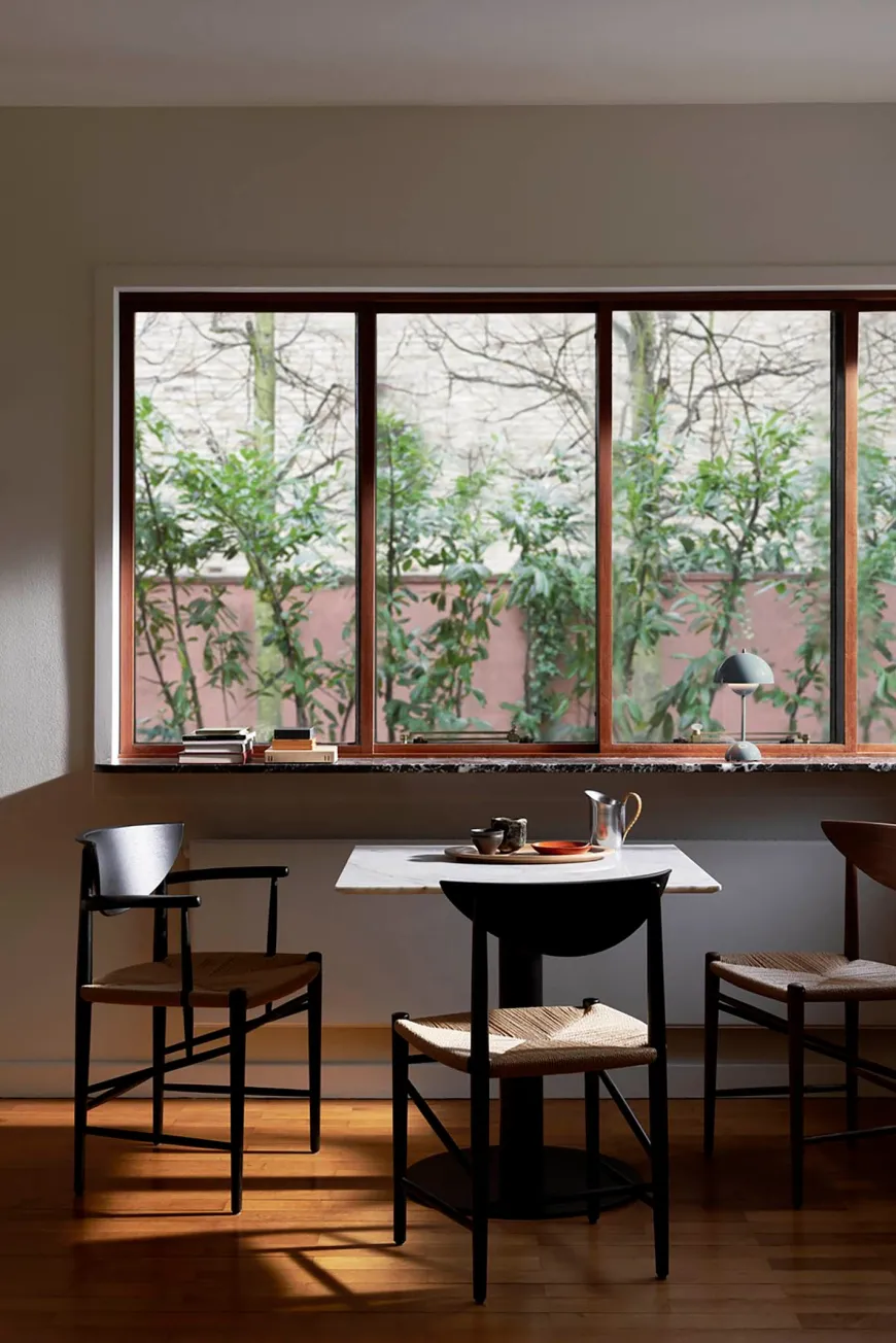 In Between SK16 er skabt af designeren Sami Kallio og udgør en moderne tolkning af klassiske former med nordisk håndværkspræg. Bordets rene linjer og elegante silhuet gør det ideelt til både caféer, hjem og kontraktmiljøer, hvor både æstetik og funktionalitet spiller sammen.