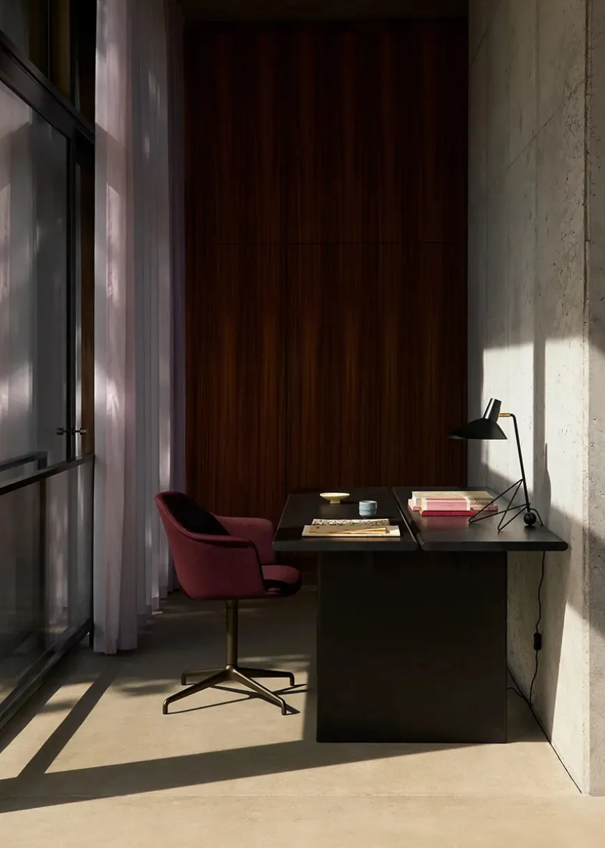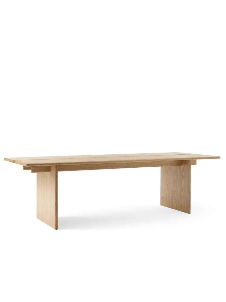 Ita-kollektionen fra &Tradition er designet af OEO Studio og forener skandinavisk og japansk minimalisme. Ita OS2 bordet tilføjer tidløs elegance til ethvert hjem. Bordet er kendetegnet ved bordpladen bestående af to nøje bearbejdede planker, der hviler på brede, men slanke træben. Bordet fås i naturlig eg eller mørkbejdset eg, og fremhæver træets naturlig skønhed. Ita OS2 er et alsidigt bord, der kan bruges både som spisebord eller et stort bord til kontoret eller mødelokalet.