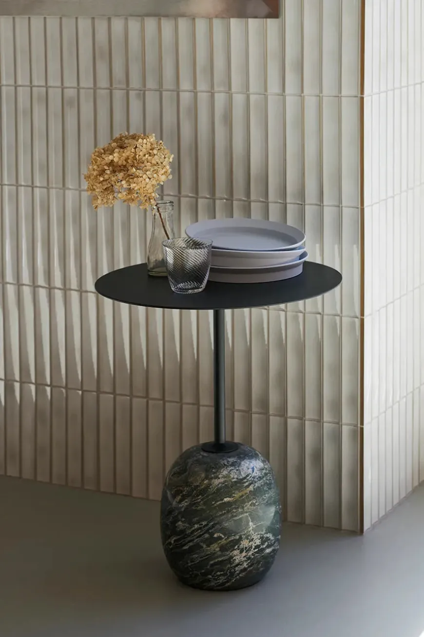 Lato bordet LN8 fra &Tradition er designet af den italienske designer Luca Nichetto. Denne nye udgave er i en flot mørk grøn marmor og med mørk grøn bordplade. Mål: Ø: 40 x H: 50 cm
