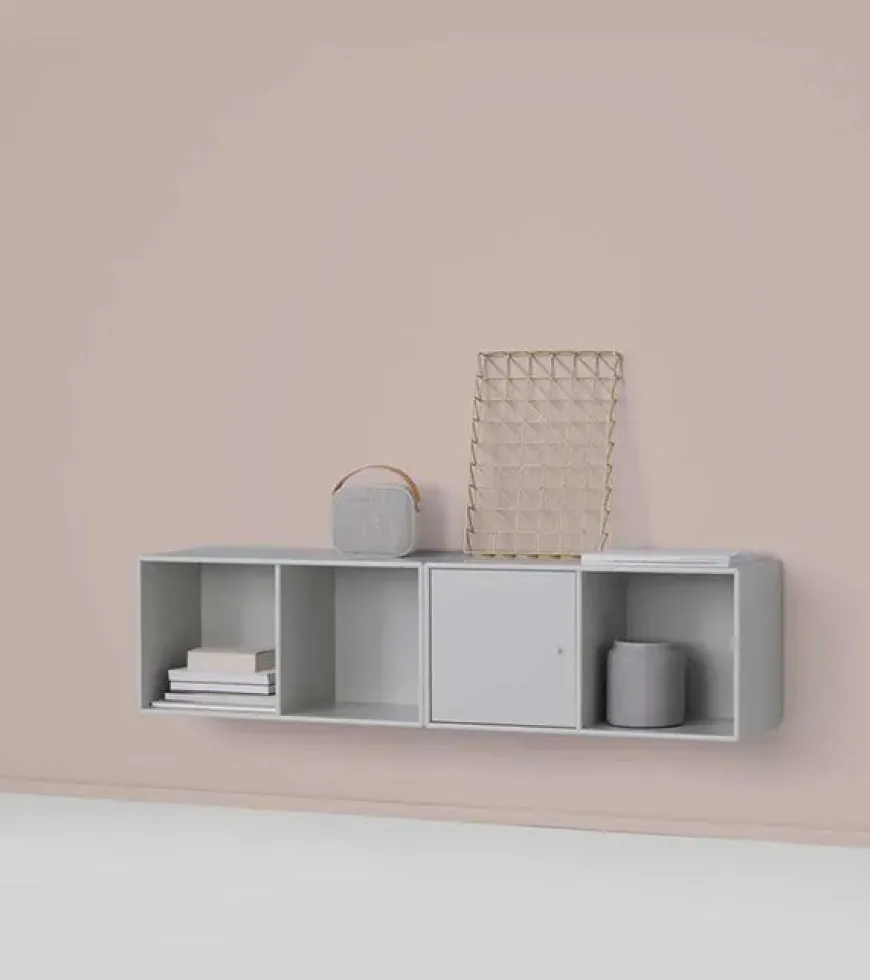 Line fra Montana i farven New White, inkl. ophængsbeslag og greb i New White. Brug det fine modul til opbevaring i stuen, gangen eller soveværelset.