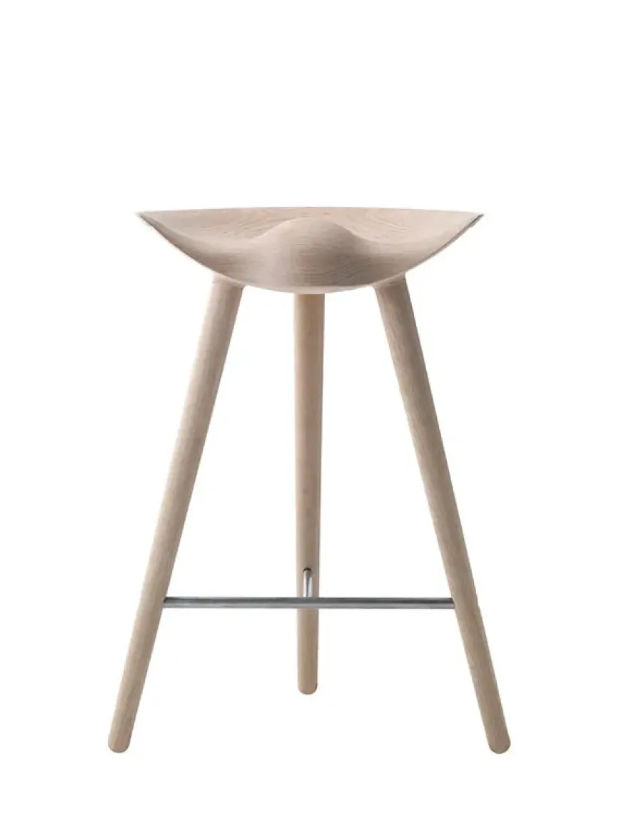 Den lave barstol fra Audo Copenhagen. ML42 er designet af Mogens Lassen i 1942 og kan vælges i tre udgaver, men mulighed for at vælge foden, i stål, messing eller kobber. Materialer: – Sortbejdset bøg – Egetræ – Brun olieret egetræ Barstolen findes også i en højde på Mål: Højde: 73 cm Sædehøjde: 69 cm Sædebredde: 46,5 cm Ben bredde: 55,5 cm