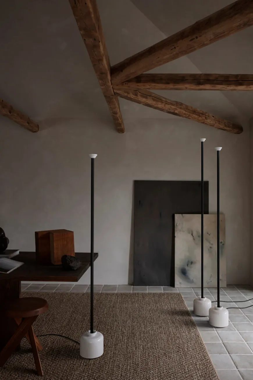 Model 1095 forener diskret elegance med innovativ belysning. Designet af Gino Sarfatti i 1968 og genudgivet af Astep, fremstår gulvlampen med en raffineret lethed i det slanke aluminiumsrør, mens den lille reflekterende skærm i hvidmalet aluminium spreder et indirekte og stemningsfuldt lys.