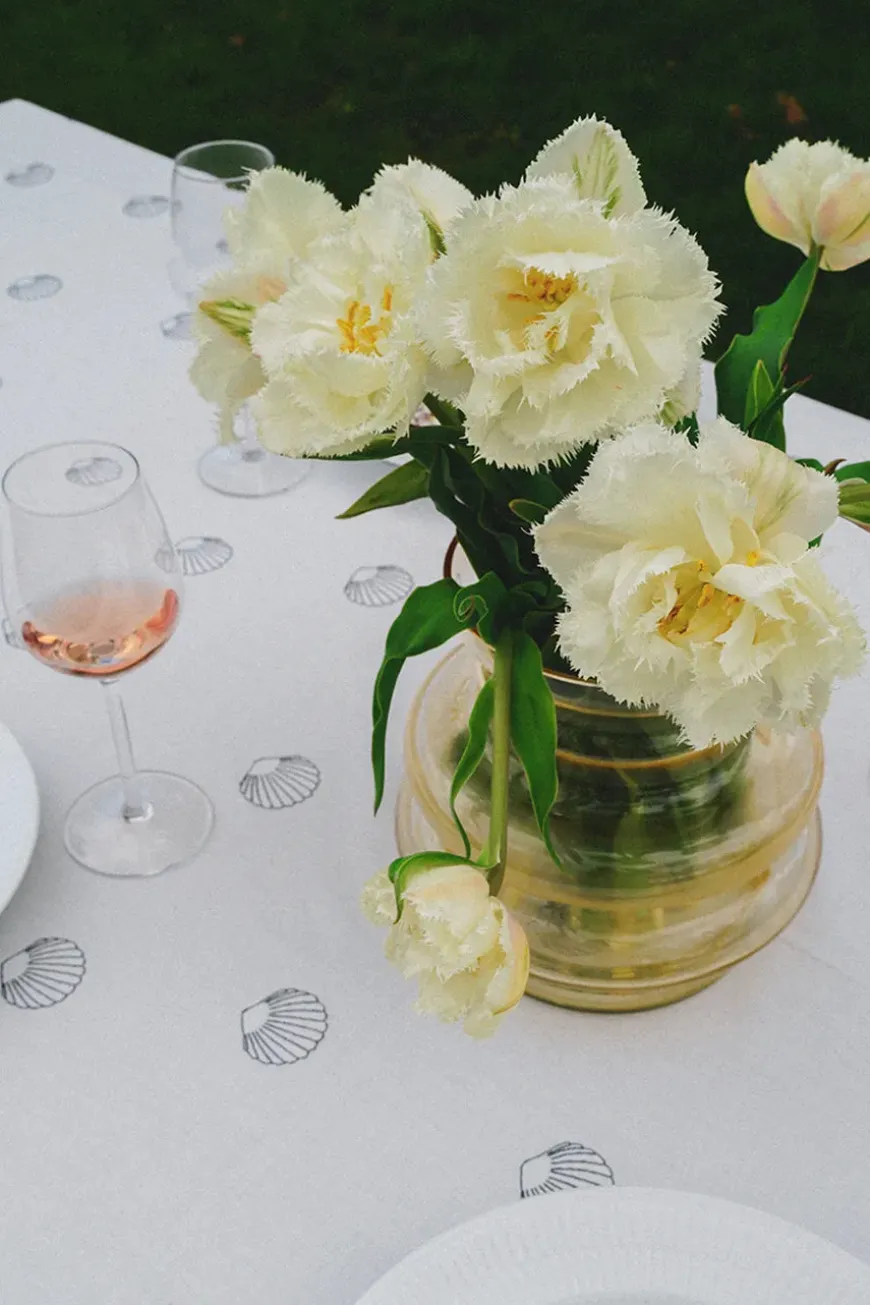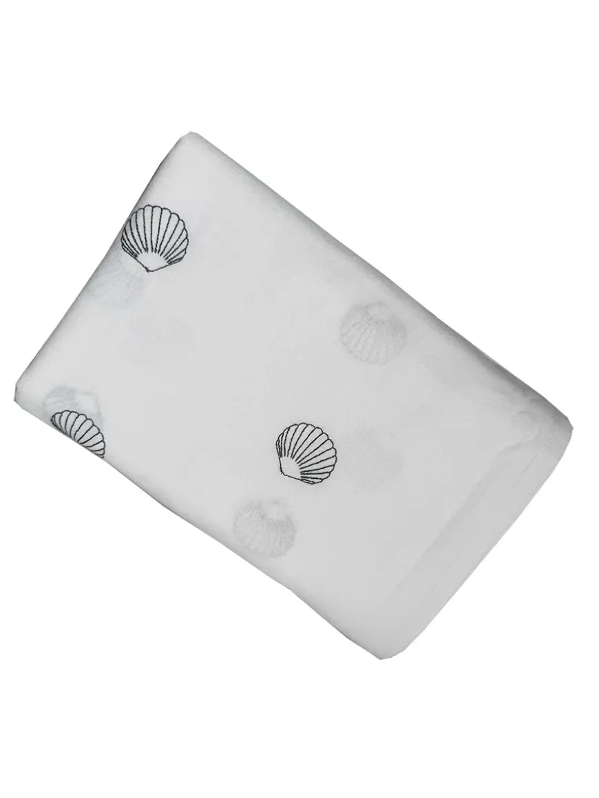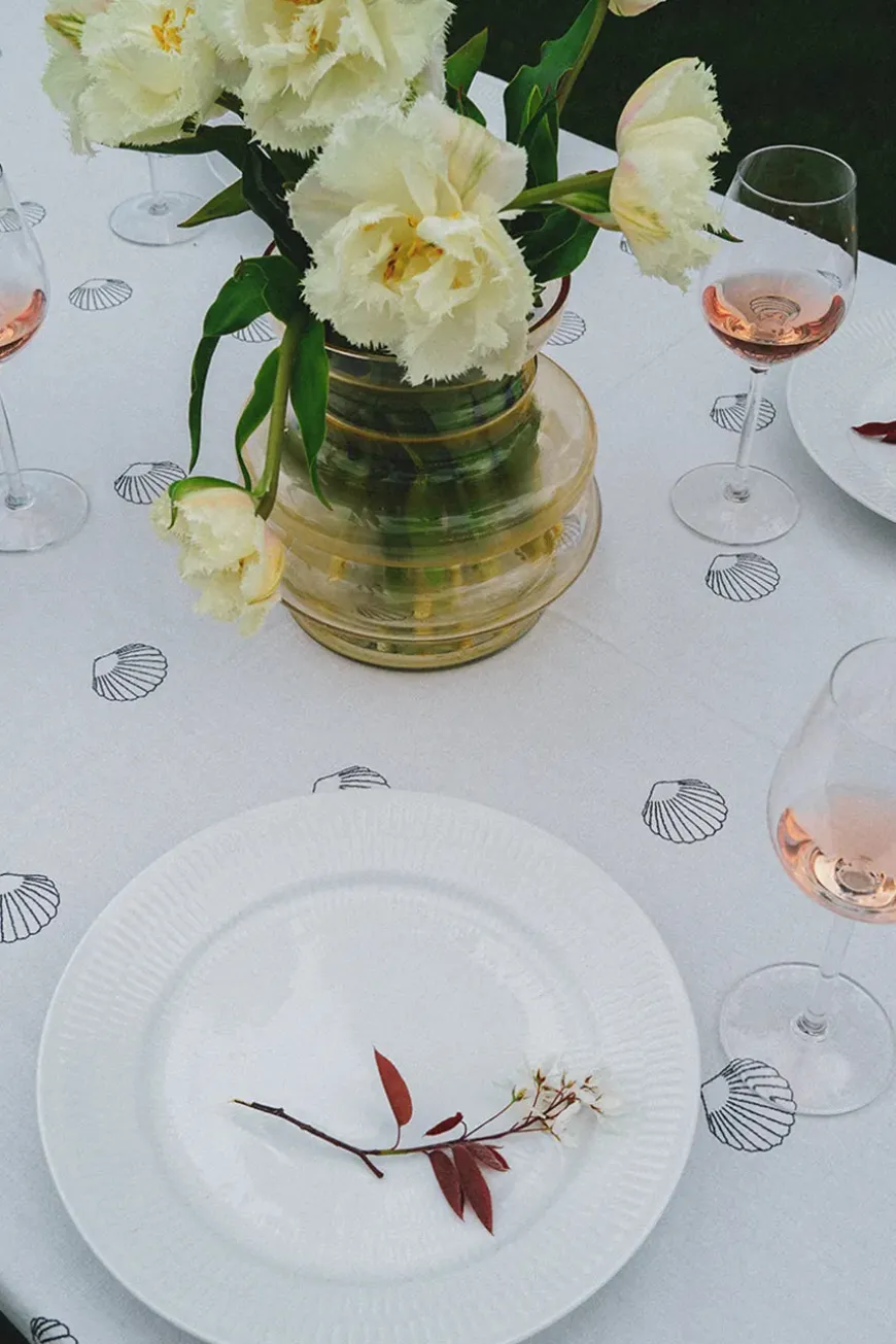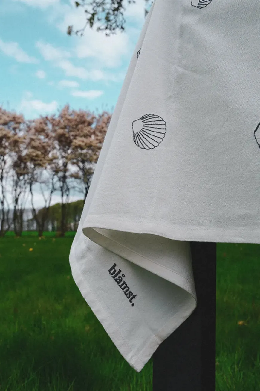 Giv dine måltider et strejf af havets charme med den smukke Musling dug fra Blåmst. Dugen er lavet i blød, 100% økologisk bomuld og prydet med håndtegnede, broderede Muslinger – en unik detalje, der tilfører borddækningen liv og personlighed.