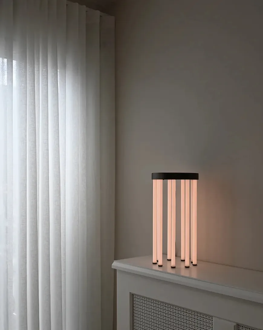 Neon sidebordet kombinerer lys og funktionalitet, således du både får bord og lampe i et og samme møbel. Neon Side Table har fødder i lysstofrør og bordplade i bronzefarvet metal. Brug bordet ved siden af en sofa eller en lænestol for et afslappet og hyggeligt udtryk.