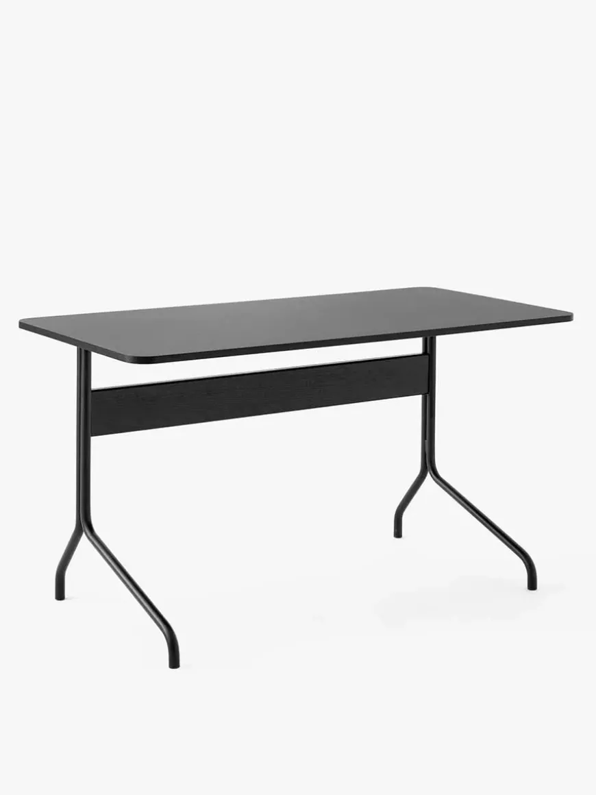 Pavilion AV16 skrivebord er tegnet af design duoen Anderssen & Voll i 2020. Det fine skrivebord er lavet med en linoleum bordplade med kant i eg eller valnød finér. Stellet er lavet i stål.