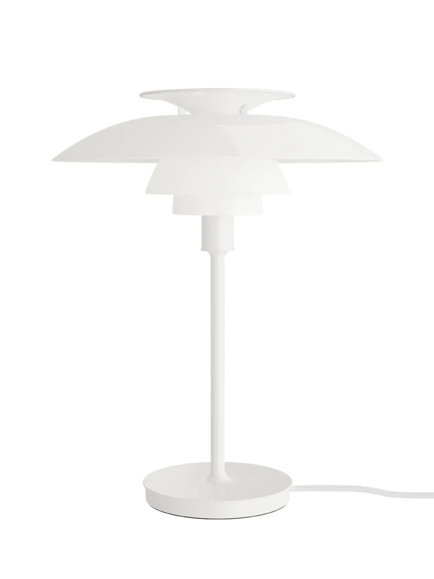 PH 80 er et af Poul Henningsens mest ikoniske designs. Den nye bordversion er elegant nedskaleret fra den oprindelige størrelse, så den passer til nutidens boliger. Med det velkendte treskærmsprincip skaber PH 80 Bordlampe et blændfrit og behageligt lys.
