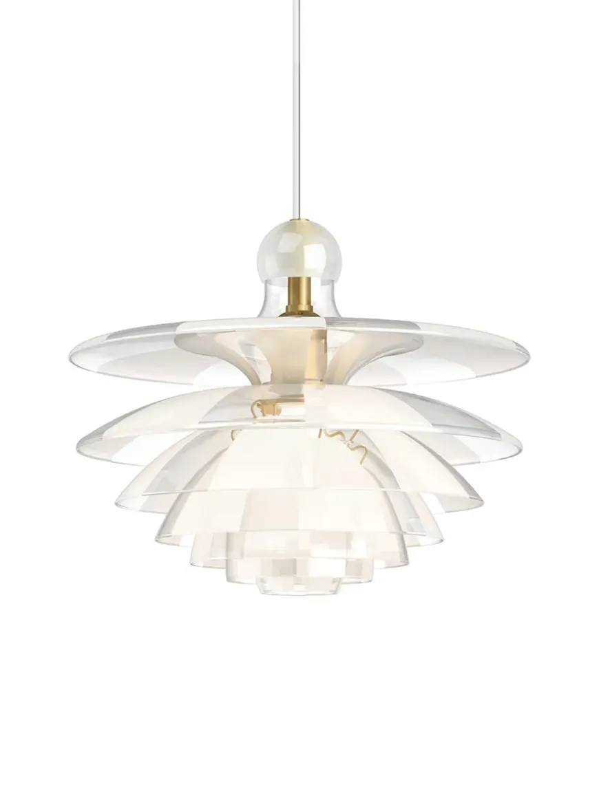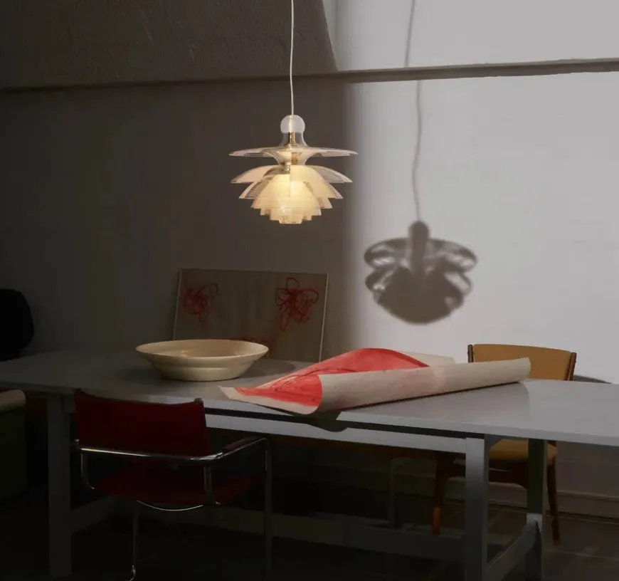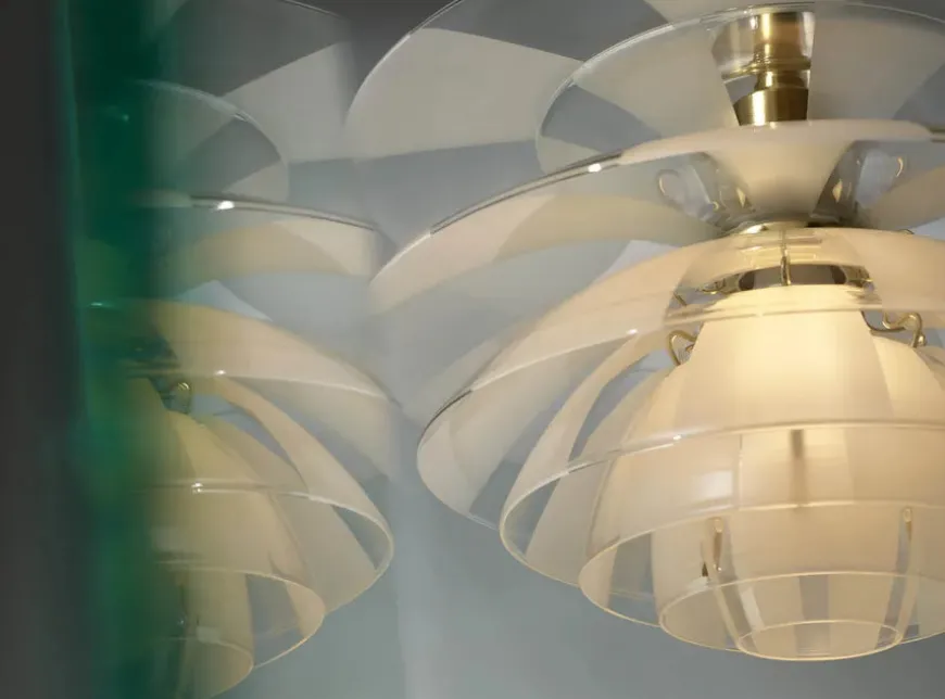 Louis Poulsen relancerer i 2020 Poul Henningsens sofistikerede glaspendel med syv skærme, optimeret stel, forbedret glas og øget stabilitet.