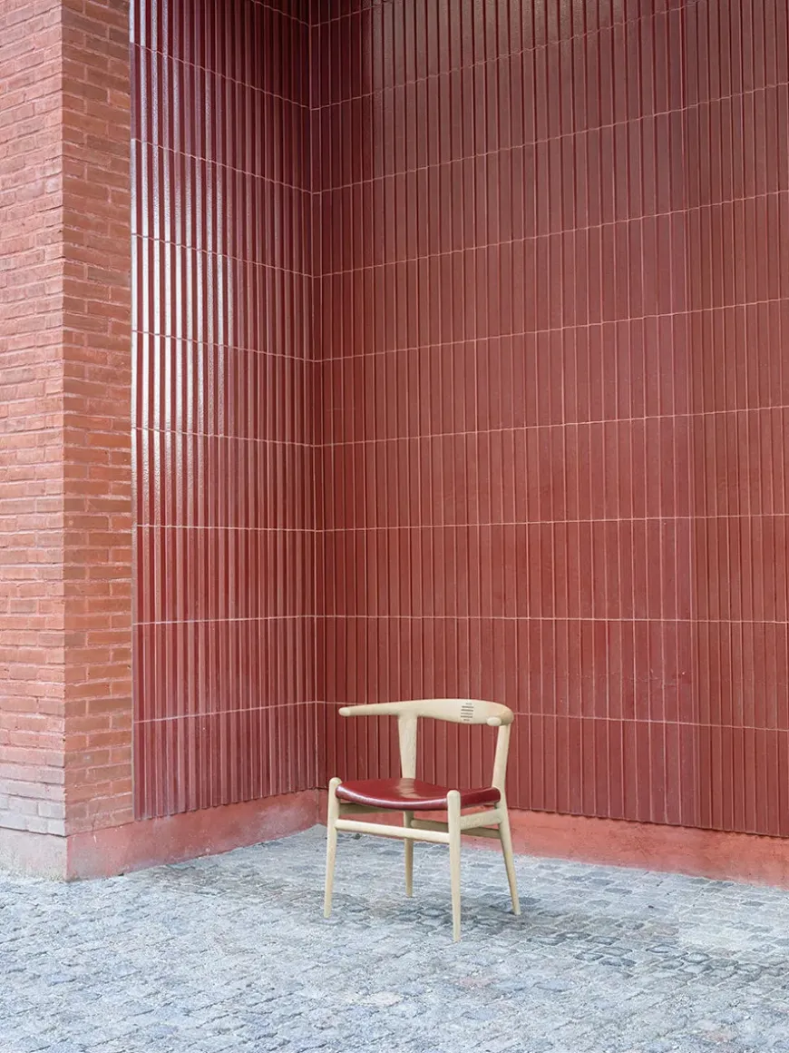 Med sine kraftige tyrehorn breder denne stol sine armlæn ud i en komfortabel overdådighed. Her er ikke sparet på noget, for her har Wegner sat alt ind på at lave en stol, der i sin stramme organiske form sætter individet i centrum. Her skal man sidde formidabelt! Arme og ryg kan støtte sig til de to store stykker massivt træ, der er samlet i midten af seks palisander-tapper og udgør kopstykket. Et stykke kunsthåndværk, der udfordrer snedkeren tilsyneladende med det ene formål at opnå den sublime siddeoplevelse. Alt andet synes mindre vigtigt, men som sædvanlig har Wegner formået ud fra dette kraftfulde udtryk at danne en fuldendt helhed med sin helt egen karakter. De to armlæn, der tilsammen danner kopstykket er altid skåret ud af samme stykke træ, således at åretegningerne passer til hinanden. Stolen er tegnet i 1961 af Hans J. Wegner til Johannes Hansen Møbelsnedkeri A/S. PP Møbler genoptog produktionen i 1991. Det er også muligt at bestille stolen med sæde i sjener.