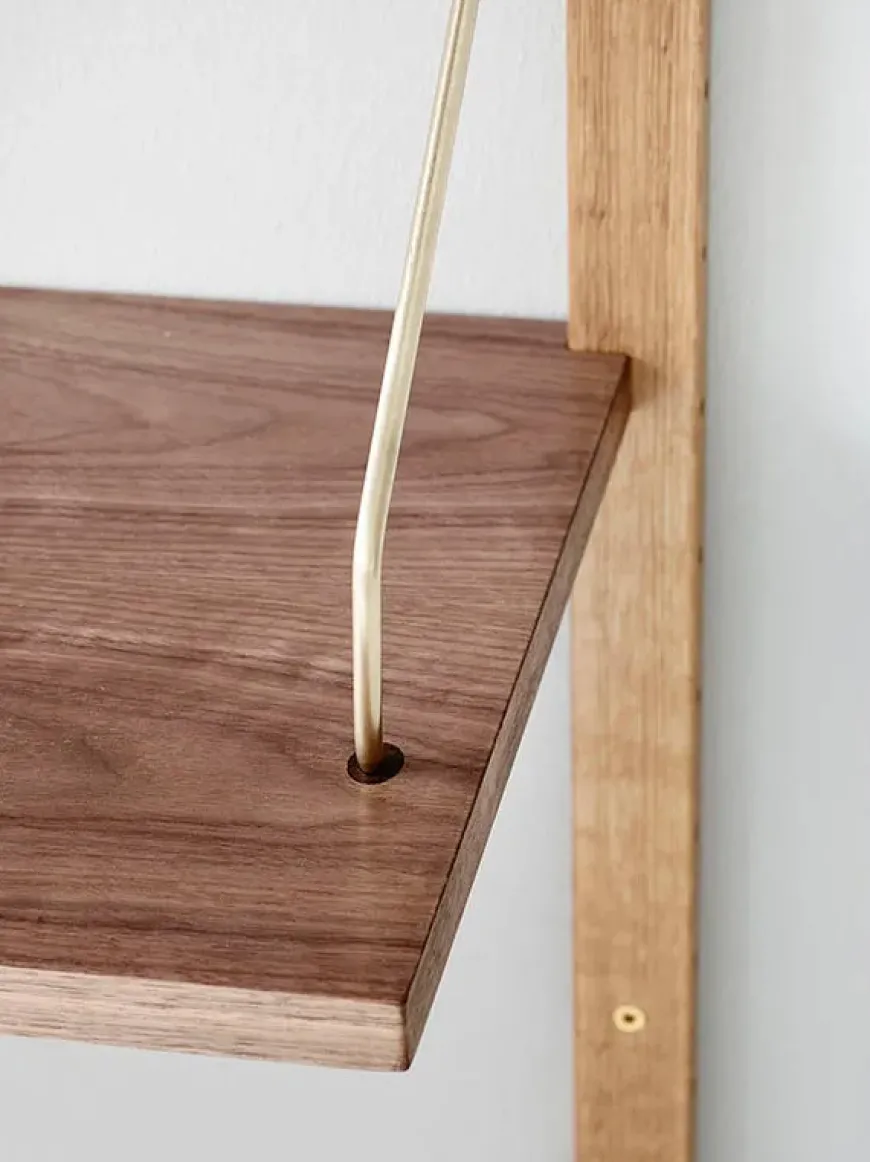 Reolen fås i materialerne sortbejdset eg, eg, røget eg og valnød med bøjler i messing eller rustfrit stål.