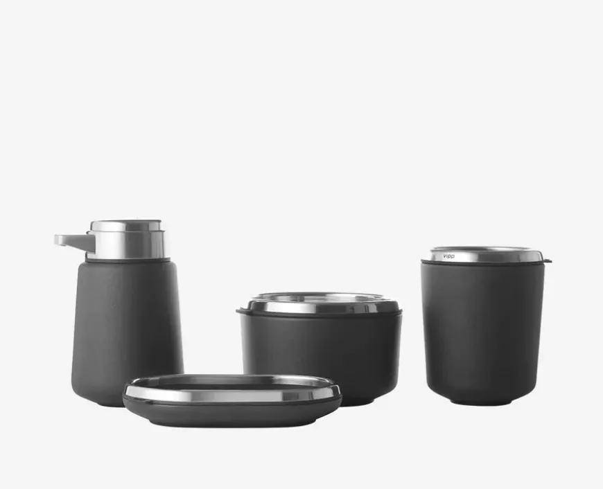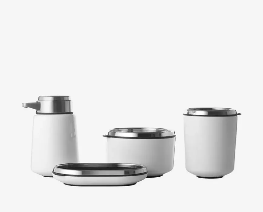 Vipp sæbeskålen er en let løsning til opbevaring af sæbe på badeværelset.