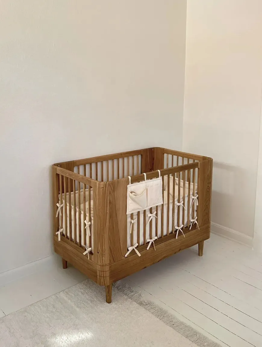 Denne smukke sengelomme i økologisk bomuld er både hyggelig og praktisk til opbevaring af babys sutter, nusseklud og andre småting. Sengelommen er designet i Danmark og lavet af det blødeste økologiske bomuld.