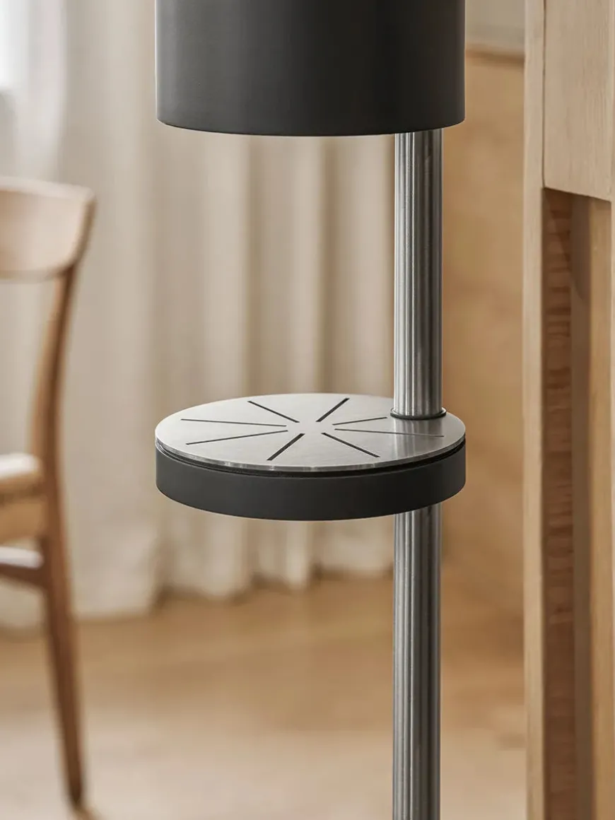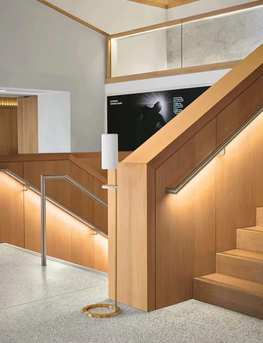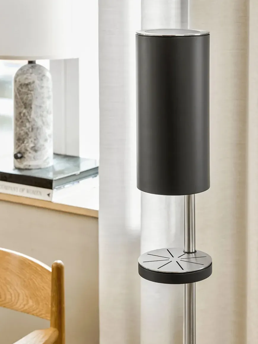 Sensorstyret håndsprit- og sæbedispenser fra VOLA i en fritstående version. Den æstetisk smukke dispenser har en slankt og enkelt design og har samtidig den praktiske funktion, at den er berøringsfri. Der medfølger separate pumpemoduler, så den kan bruges til sæbe, skum eller desinfektionsspray.