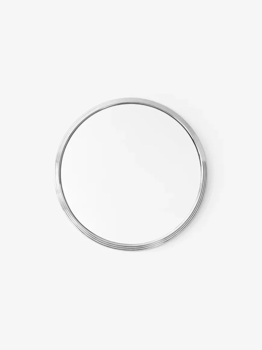 Det lille Sillon spejl fra &Tradition er designet Sebastian Herkner og laves krom eller messing. Det runde Sillon spejl har en diameter på 46 cm.