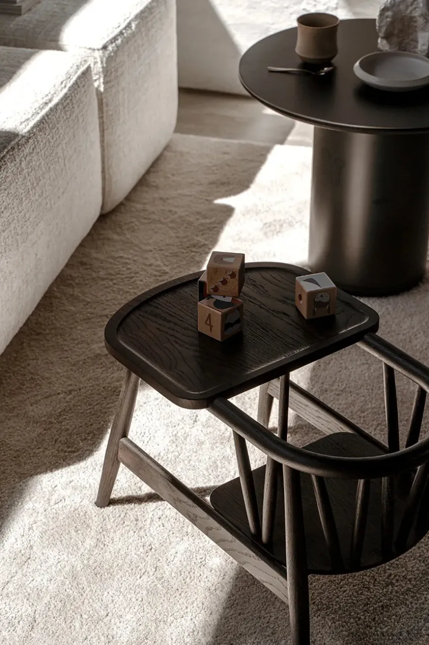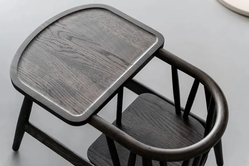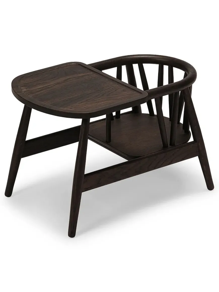 Smilla børnestolen kommer i tre forskellige varianter. Her er stolen i egetræ med røget bejdse.