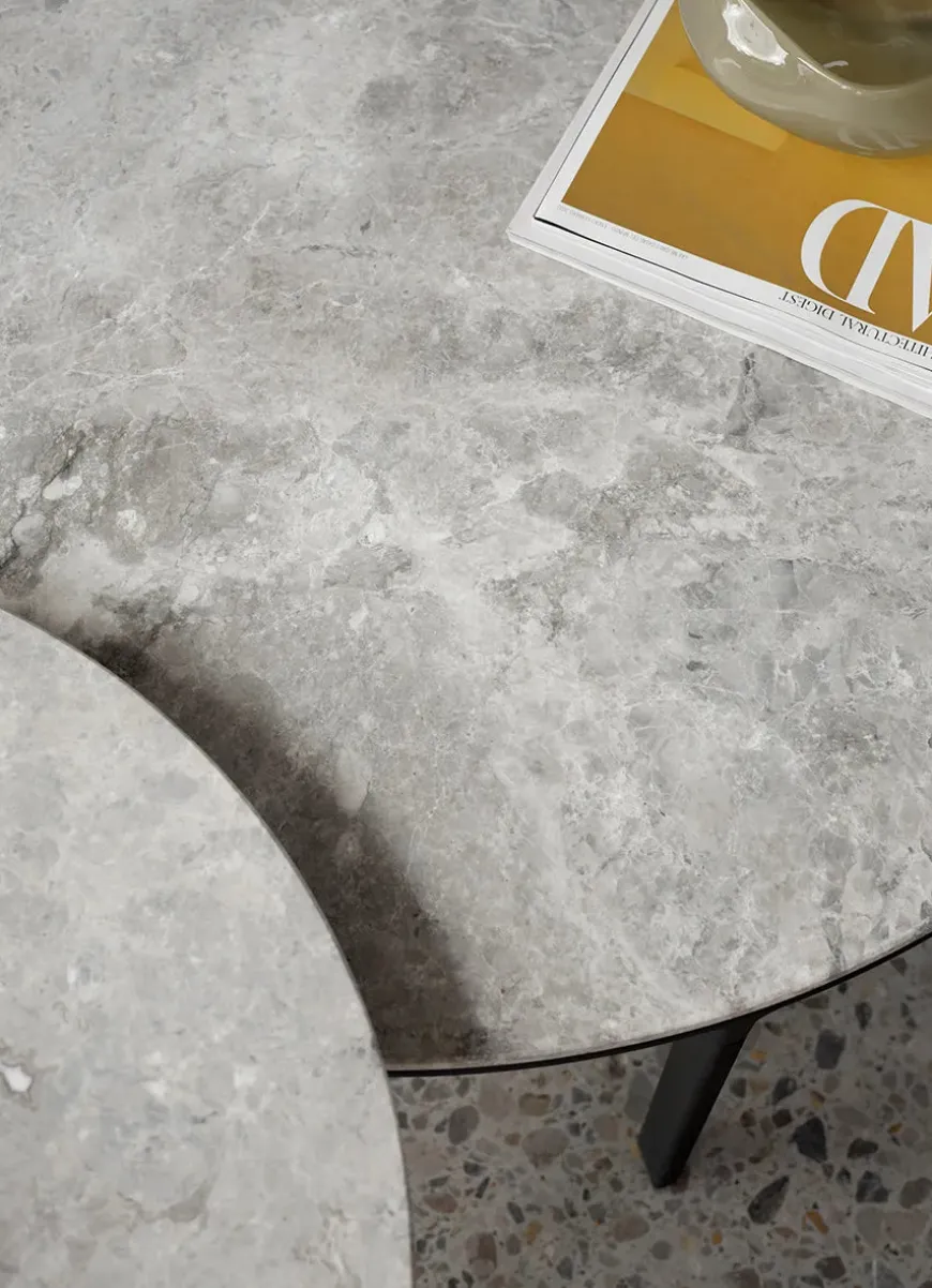 Materiale: Pulverlakeret aluminium, stål, bordplade af marmor