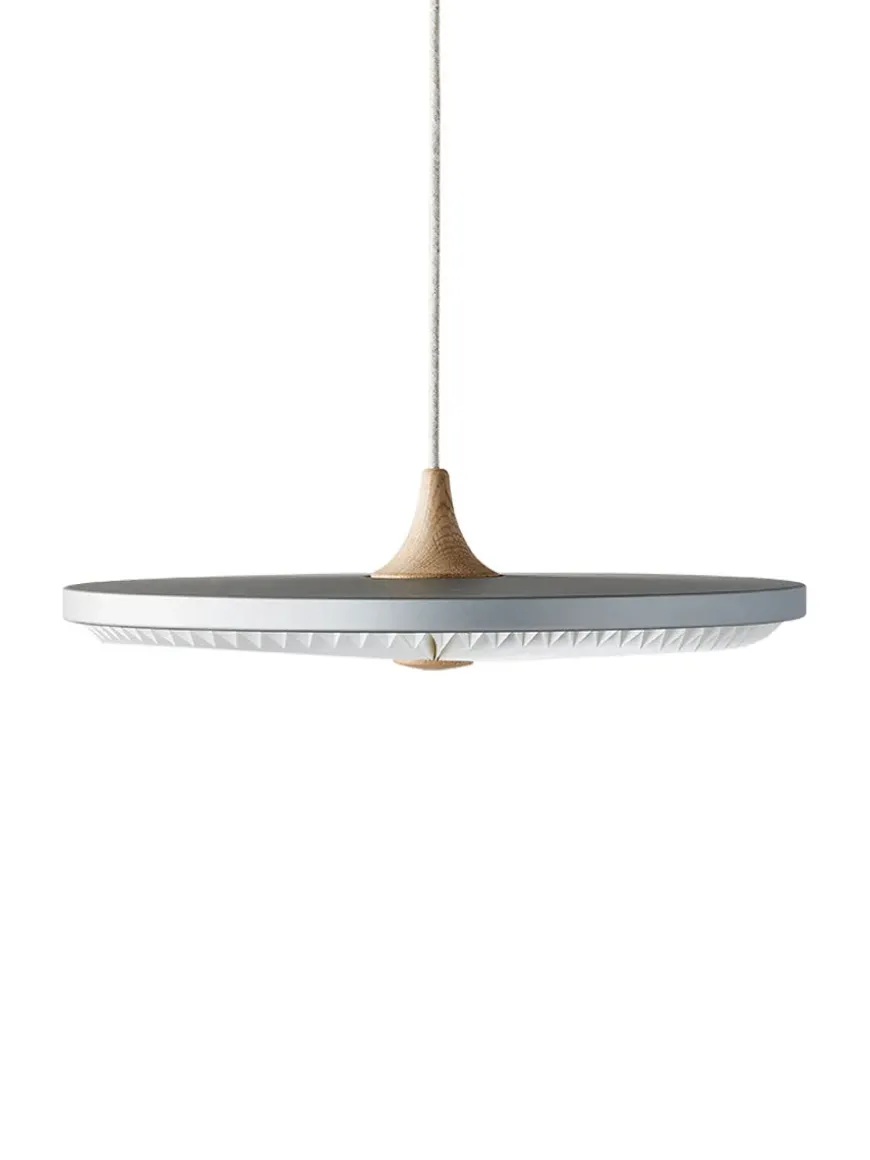 Soleil betyder sol på fransk, og lampen har samme fine egenskaber med en lysspredning som en strålende sol – der spreder lyset fra sit centrum. Le Klint Soleil pendlens slanke design gør den meget anvendelig til at hænge over spisebordet, i restauranten eller mødelokalet. Lampen er uden lysdæmper, men kan benyttes med Casambi lysdæmper, hvor man kan styre lysstyrken via en gratis app/bluetooth på sin mobiltelefon. Soleil kan ikke benyttes sammen med andre allerede installerede lysdæmper-funktioner i boligen. Mål: Diameter: Ø 50 cm. Højde: 6 cm. Farve: Silver Cloud Træsort: Røget eg Skærm: Standard (plast) Model: 198 Designet af: Philip Bro Ludvigsen