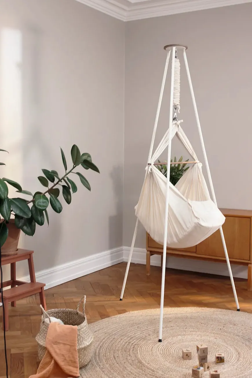 Stativet passer ind i alle hjem med sit stilrene og enkle skandinaviske design. Stativet er nemt at samle helt uden værktøj. Stativet er højt nok til både at have Vuggemotor Original eller og eller hængende samtidig.