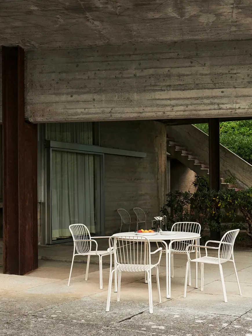Thorvald serien er en hyldest til den københavnske designer og kunstner, der har udstillet mosaikmotiver på sit museum, Thorvaldsens Museum. De skulpturelle former på Thorvald serien står i flot kontrast til det pulverlakerede stål, som kan virke hårdt. SC98 er et rundt havebord, der er let at se på, og derfor både gør sig godt til mindre områder og terrasser.