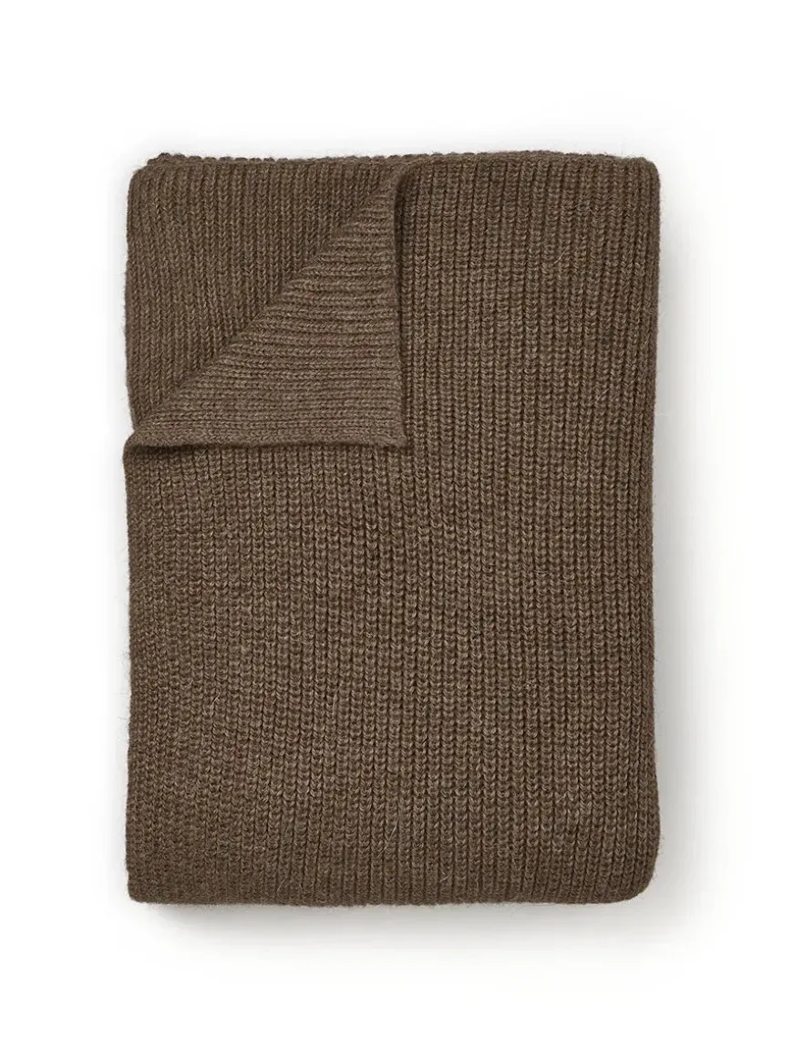 Et klassisk plaid strikket i ribstruktur, der giver tæppet blødhed og volume. Det er fremstillet uden brug af kemikalier og er derfor i fine naturlige farver. Lavet i det fineste babylama uld.