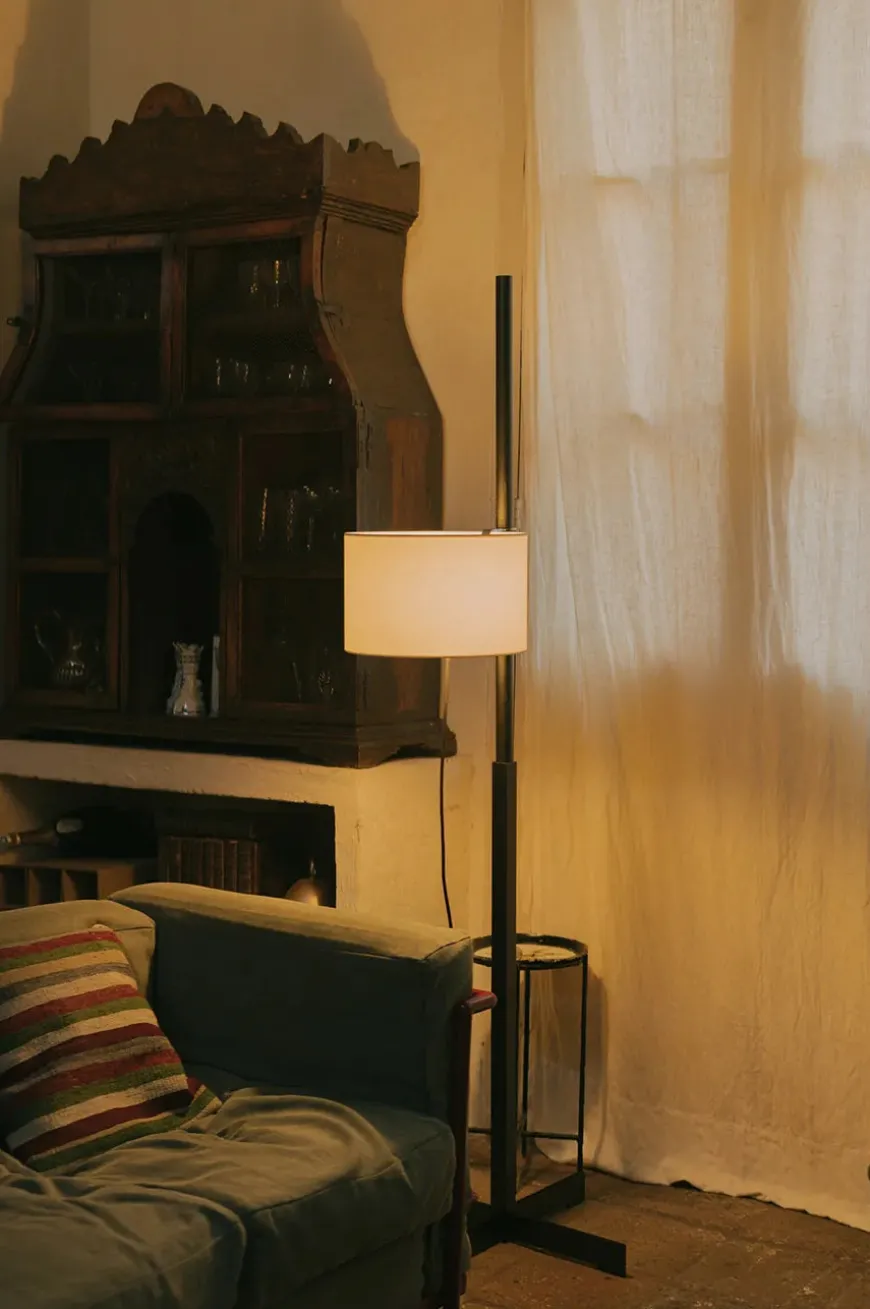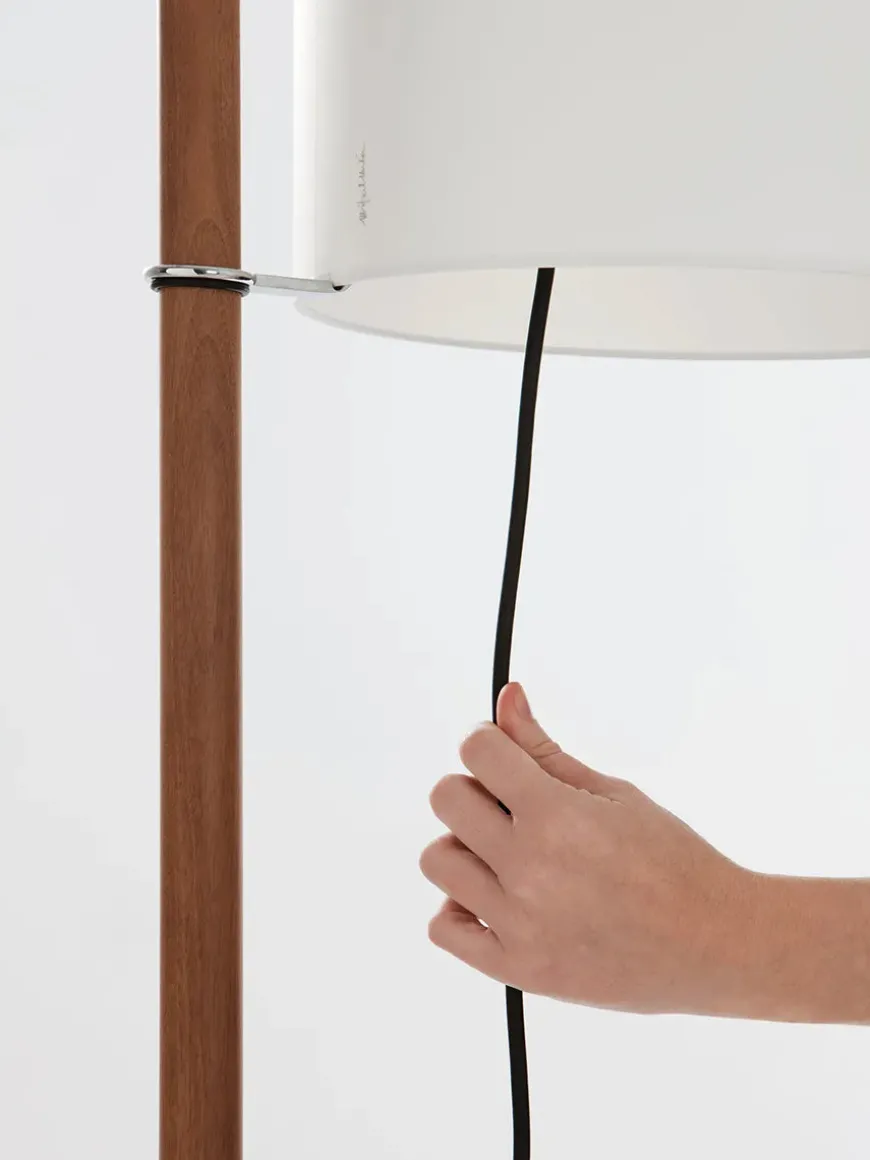 TMM er en lampe, der kan tilpasses efter dit behov. Lampen kombinerer på smukkeste vis det industrielle design med enkelthed. Det lette udtryk gør at gulvlampen kan bruges i flere typer af indretninger, uanset om det er en moderne eller klassisk indretning. Stellet er af eg og skærmen er fremstillet af hvid eller beige pergament. Den krydsformet base understøtter det firkantet skaft, der bliver cirkulært ved midten, der gør det muligt at flytte skærmen op eller ned. Skærmens højde kan justeres ved hjælp af et gummibund på skaftet.
